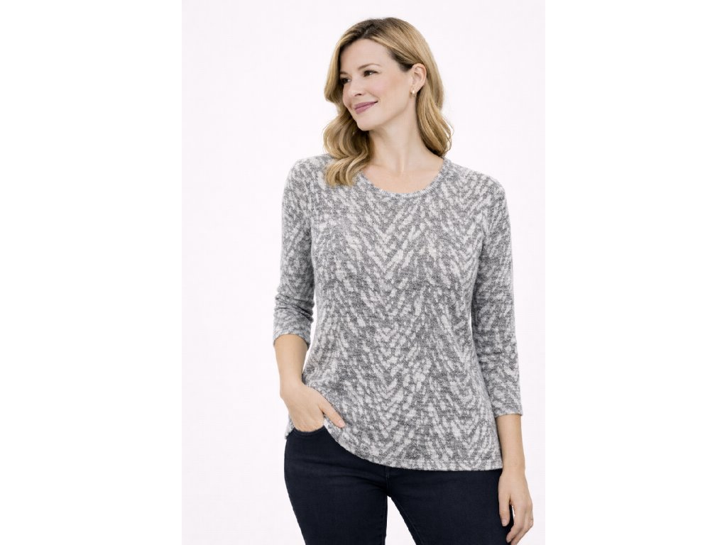 Tato dámská halenka z české výroby je ideální volbou pro chladnější dny. Je ušitá z teplejšího, příjemně měkkého materiálu s jemně žíhaným efektem, který dodává modelu hloubku a elegantní vzhled. Halenka krásně přiléhá k tělu, nikde netlačí a přirozeně kopíruje siluetu, takže se pohodlně nosí po celý den.